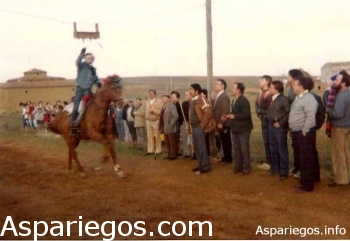 De la cuerda colgaba un cajón que estaba ranurado y en cada ranura había carretes de cinta con una argolla que se quedaba colgando y era entonces cuando desde el caballo y a galope intentaban acertar con el puntero en esa argolla para sacar la cinta del cajón.